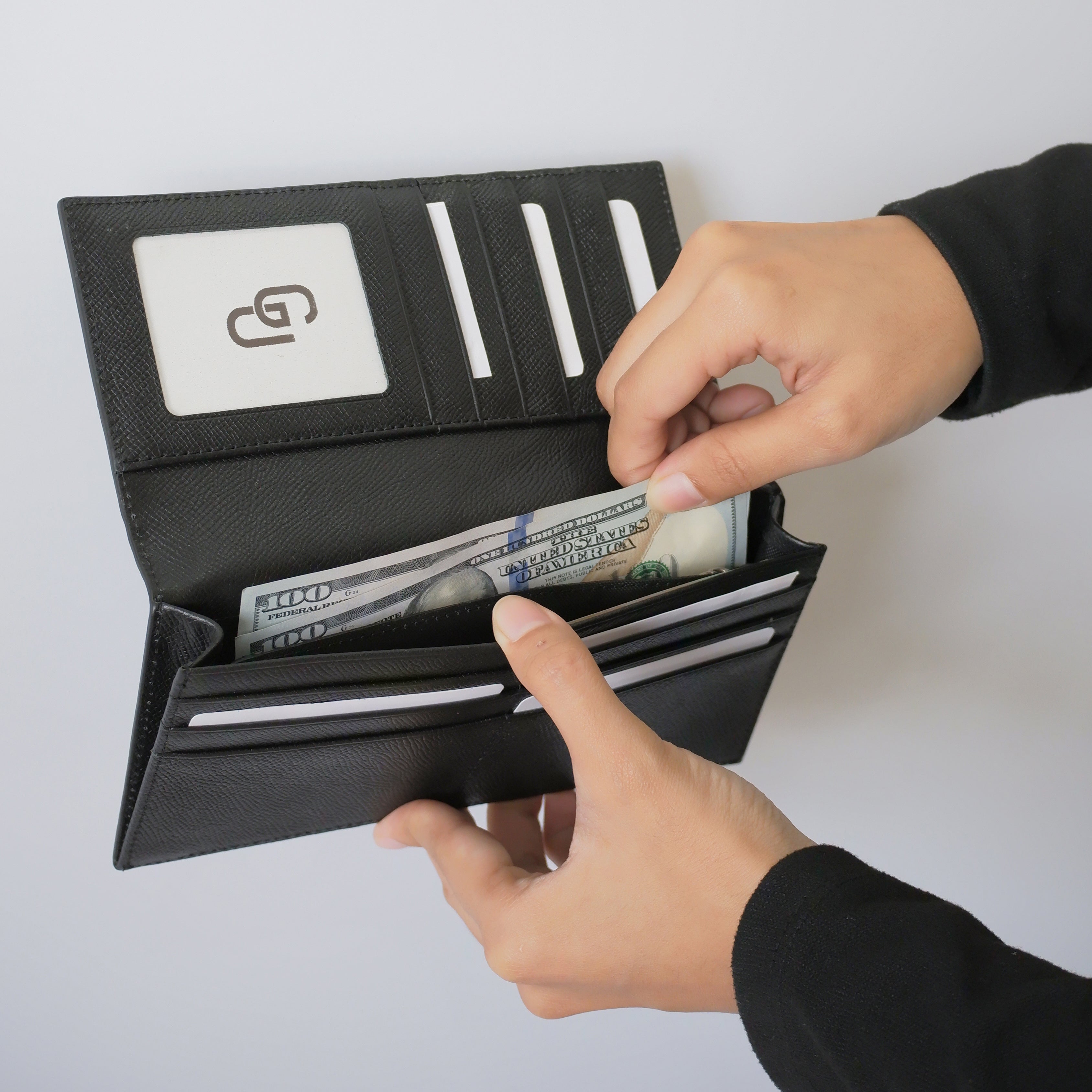 Bên trong sắp xếp thông minh với 11 ngăn thẻ, 1 ngăn kính, 3 ngăn tiền và 1 ngăn khóa kéo – vừa tiện lợi, vừa giữ được sự gọn gàng. Màu đen lịch lãm, dễ phối hợp trong mọi hoàn cảnh.